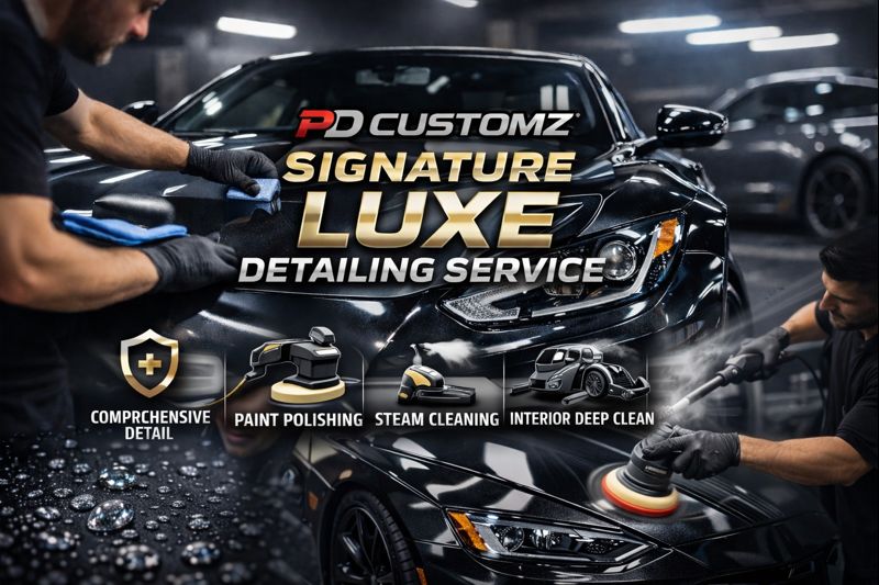 The Signature Luxe Detail is PD Customz’ premium full-service detail for clients who want a complete interior and exterior reset.